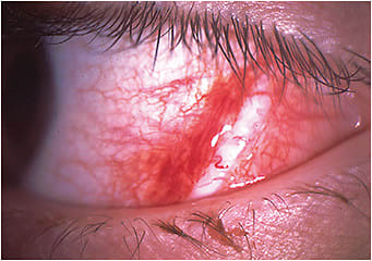Conjunctival laceration is an uncommon and—if it involves penetration of the globe—a potentially sight-threatening condition.1 For this reason, it is essential that penetrating injury be ruled out in individuals presenting with conjunctival laceration.2 Historically, Seidel’s sign has been used as an indicator of penetrating ocular injury. It is also very important to perform a dilated fundus evaluation to rule out retinal involvement.2