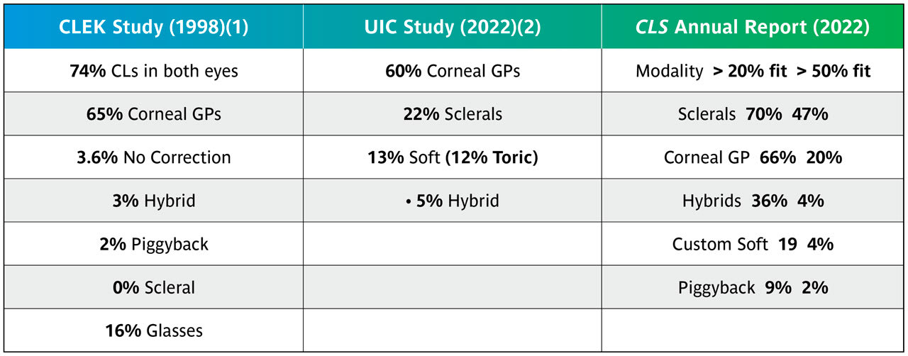 4. Bennett ES. 2022 GP and Custom Soft Annual Report. Contact Lens Spectrum. 2022 Oct;37:24-31.