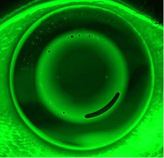 Bubbles arise when air becomes trapped between the lens and cornea, typically upon lens application. Small-sized bubbles are common and do not usually cause corneal or visual complications (Figure 4).
