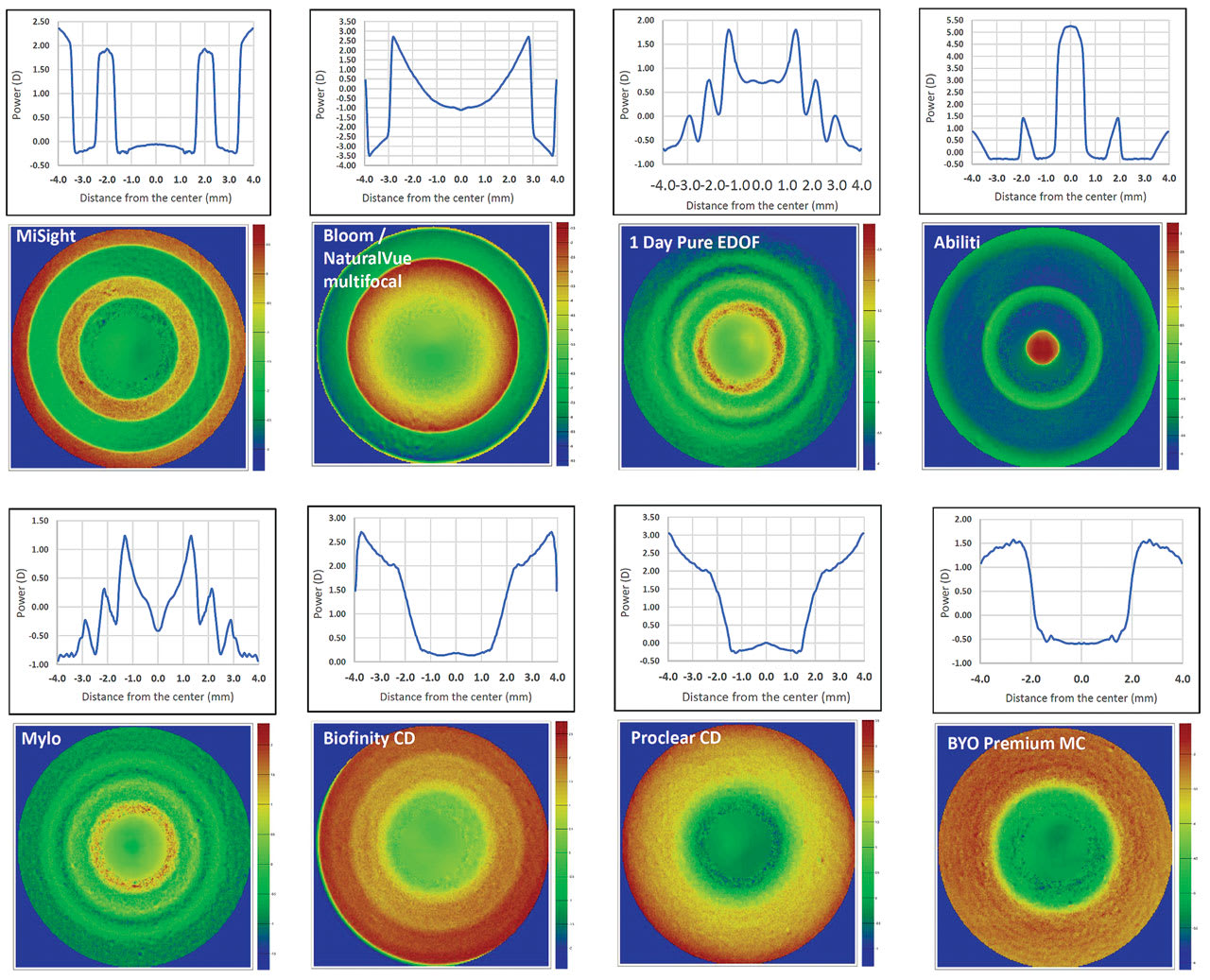 Power profiles and design of soft lenses used for myopia management were recently published28 (see Figure 3). Looking at different on- and off-label lenses for myopia management, two primary observations were apparent.
