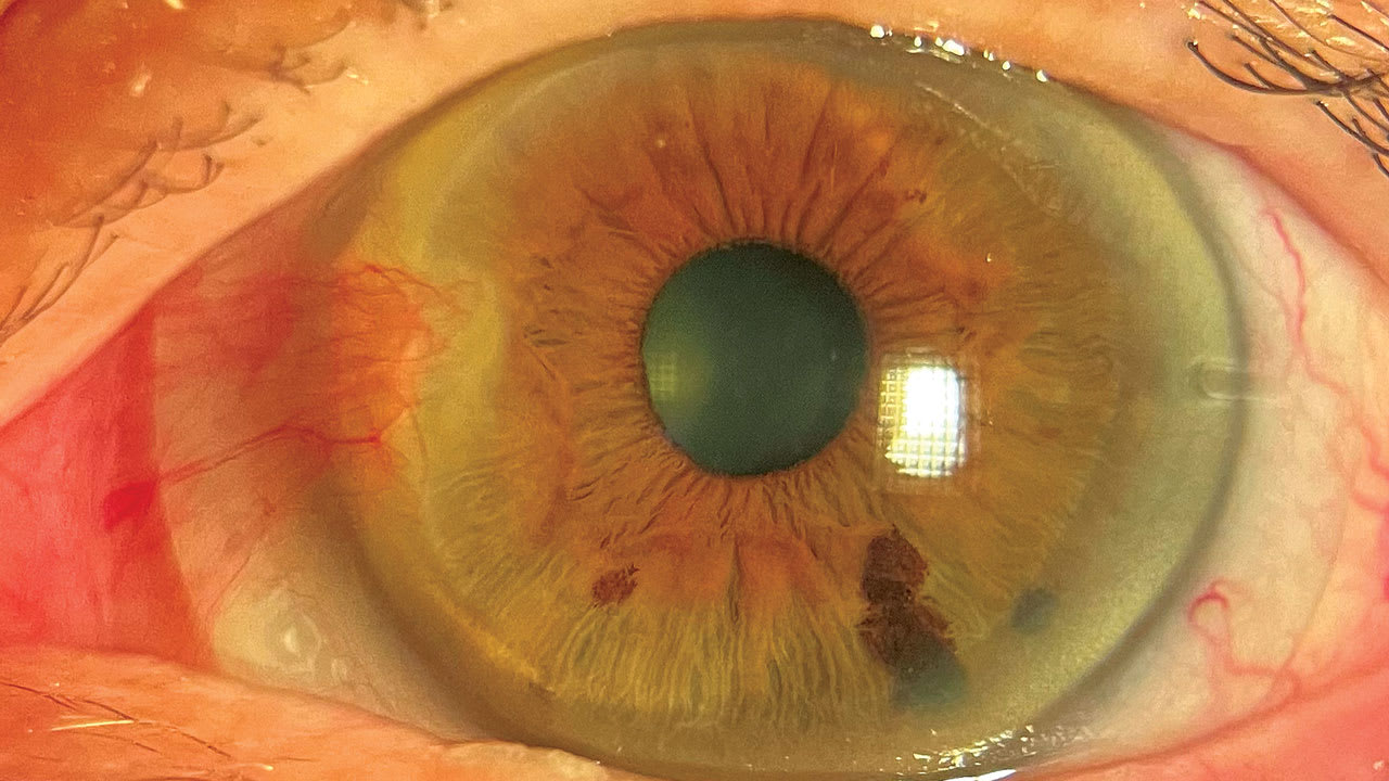 PTERYGIA ARE fibrovascular degenerations of the bulbar conjunctiva that extend onto the corneal surface, often resulting in regular and irregular astigmatism (Chu et al, 2020). Ultraviolet light exposure is thought to be a primary environmental risk factor, with the highest prevalence near the equator (He and Wu, 2022; Baheran et al, 2023). Pterygia can be surgically excised with a conjunctival autograft, but recurrence is possible (Chu et al, 2020). This case presents the contact lens management of a patient who has pterygium and seeks visual improvement.