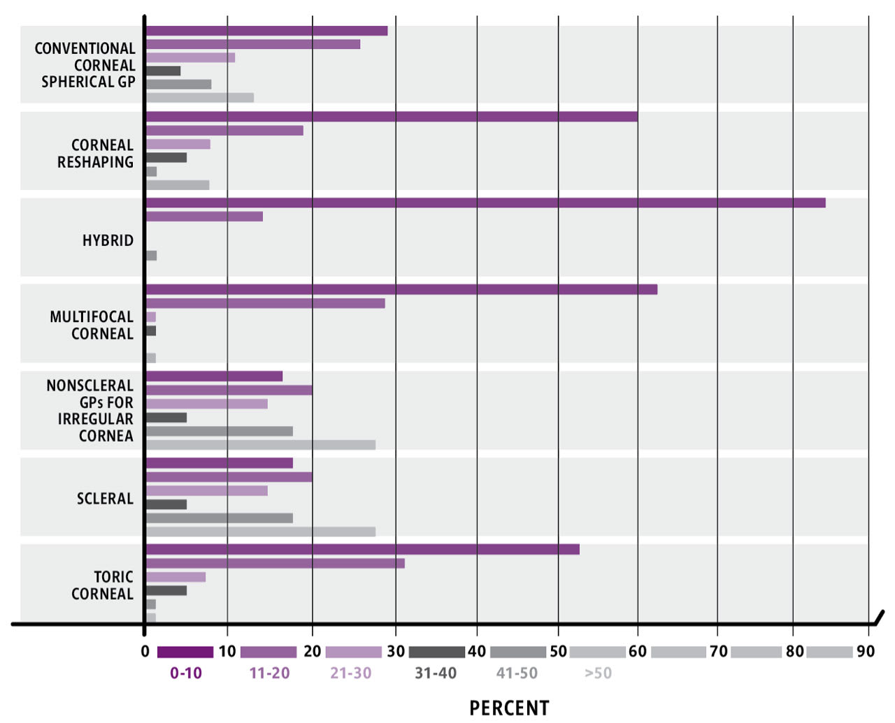 These trends largely align with the responses to the survey completed by readers of CLS. The CLS reader survey posed questions to practitioners about the use of various specialty lenses in their own practices. Following is a deeper dive into those responses.