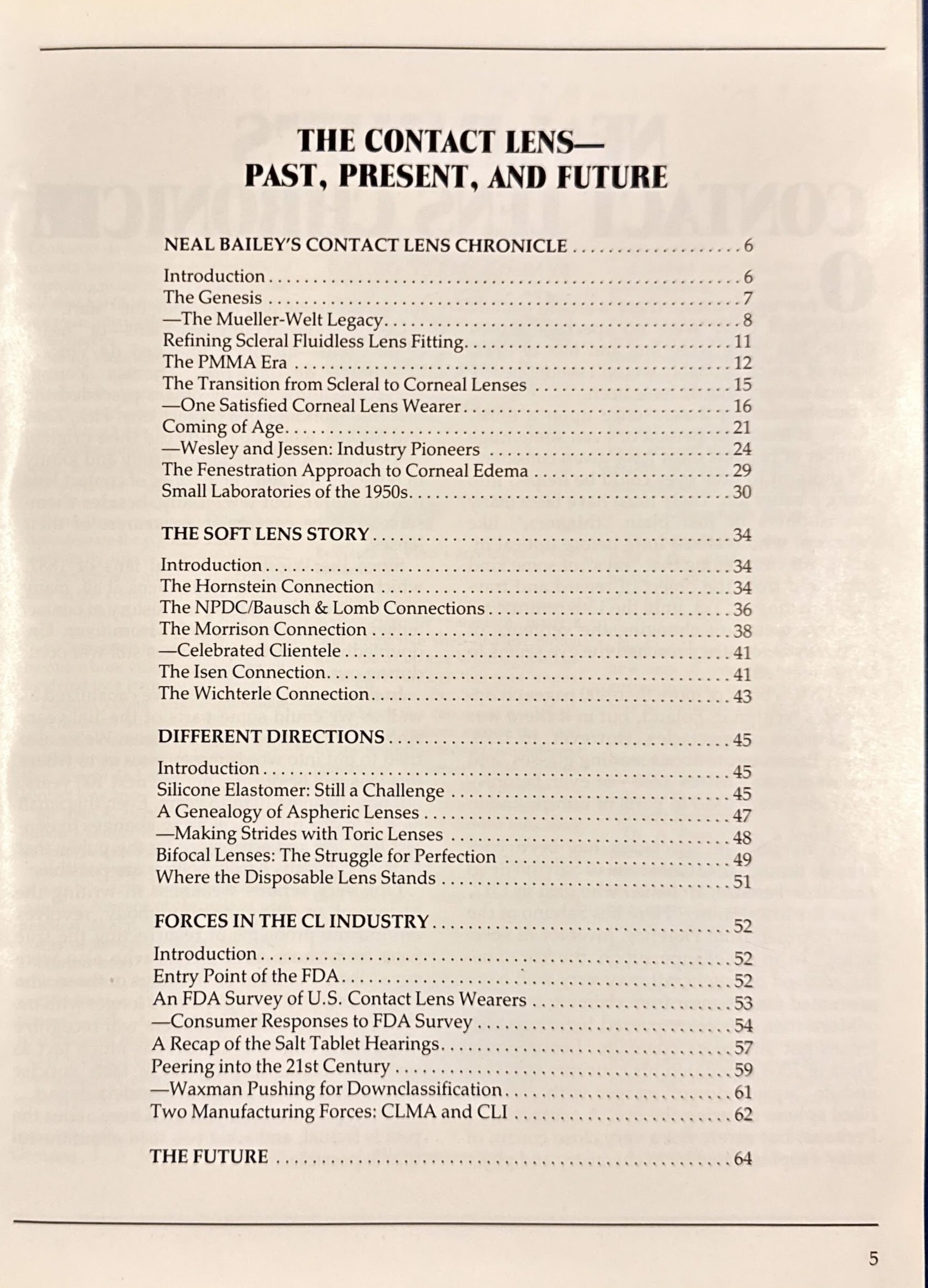 As we celebrate Contact Lens Spectrum's 40th Anniversary, we will look back, forward, and all around in terms of the field of contact lenses. This month, we look back, with the help of CLS's Contact Lens Centennial edition, printed in 1987. In looking at the table of contents, it is fascinating to think how far we had come in the first 100 years, let alone the next 40 years.